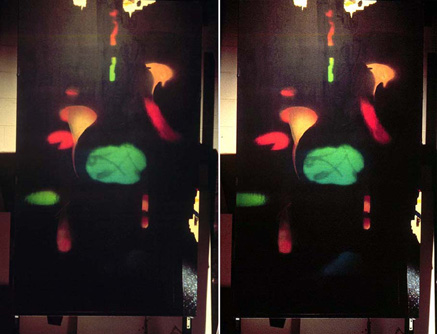 with oil paintings and acrylics, and went on to include holographic