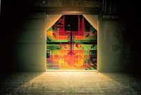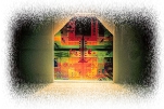 These transmission holograms resemble stained glass windows illuminated